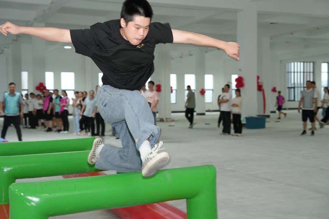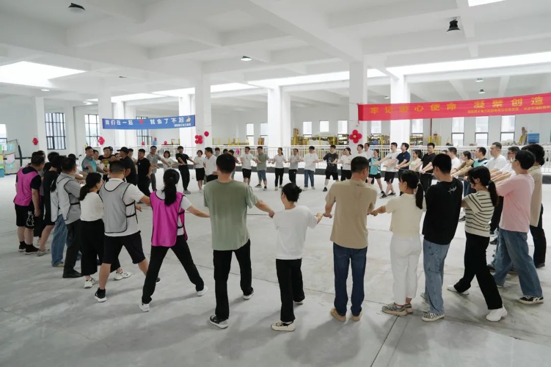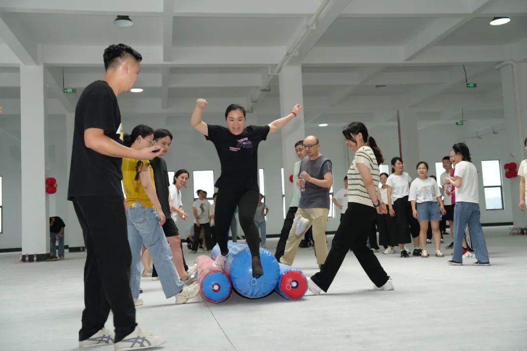 在教練帶領(lǐng)大家進(jìn)行充分熱身之后,團(tuán)建活動(dòng)正式拉開序幕,6支團(tuán)隊(duì)分別起了各具特色的隊(duì)名與振奮人心的口號(hào),在“超級(jí)障礙賽”、“飛盤嘉年華”與“蒙眼博弈”等前三個(gè)競(jìng)技游戲中,隊(duì)友奮力拼搏、相互團(tuán)結(jié)協(xié)作,用耐心和智慧出色完成每個(gè)項(xiàng)目,對(duì)手之前本著“友誼第一、比賽第二”的體育精神,相互尊重,在充滿挑戰(zhàn)性和趣味性的活動(dòng)中賽出了風(fēng)格,賽出了水平。在最后一個(gè)“動(dòng)力圈”游戲項(xiàng)目中所有人團(tuán)結(jié)協(xié)作、配合默契,勇于挑戰(zhàn)的精神風(fēng)貌充分展現(xiàn)了湘能楚天大家庭團(tuán)結(jié)向上、銳意進(jìn)取的昂揚(yáng)斗志。整個(gè)活動(dòng)現(xiàn)場(chǎng)氣氛活躍而又熱烈,每個(gè)人在揮灑汗水的同時(shí),也享受了趣味運(yùn)動(dòng)帶來的樂趣,提升團(tuán)隊(duì)的凝聚力和集體向心力的同時(shí)營(yíng)造了溫馨、愉悅的企業(yè)文化氛圍,進(jìn)而增強(qiáng)了員工對(duì)企業(yè)的歸屬感。我們?cè)谝黄穑蜁?huì)了不起。<<<向左滑動(dòng)欣賞更多精彩瞬間...