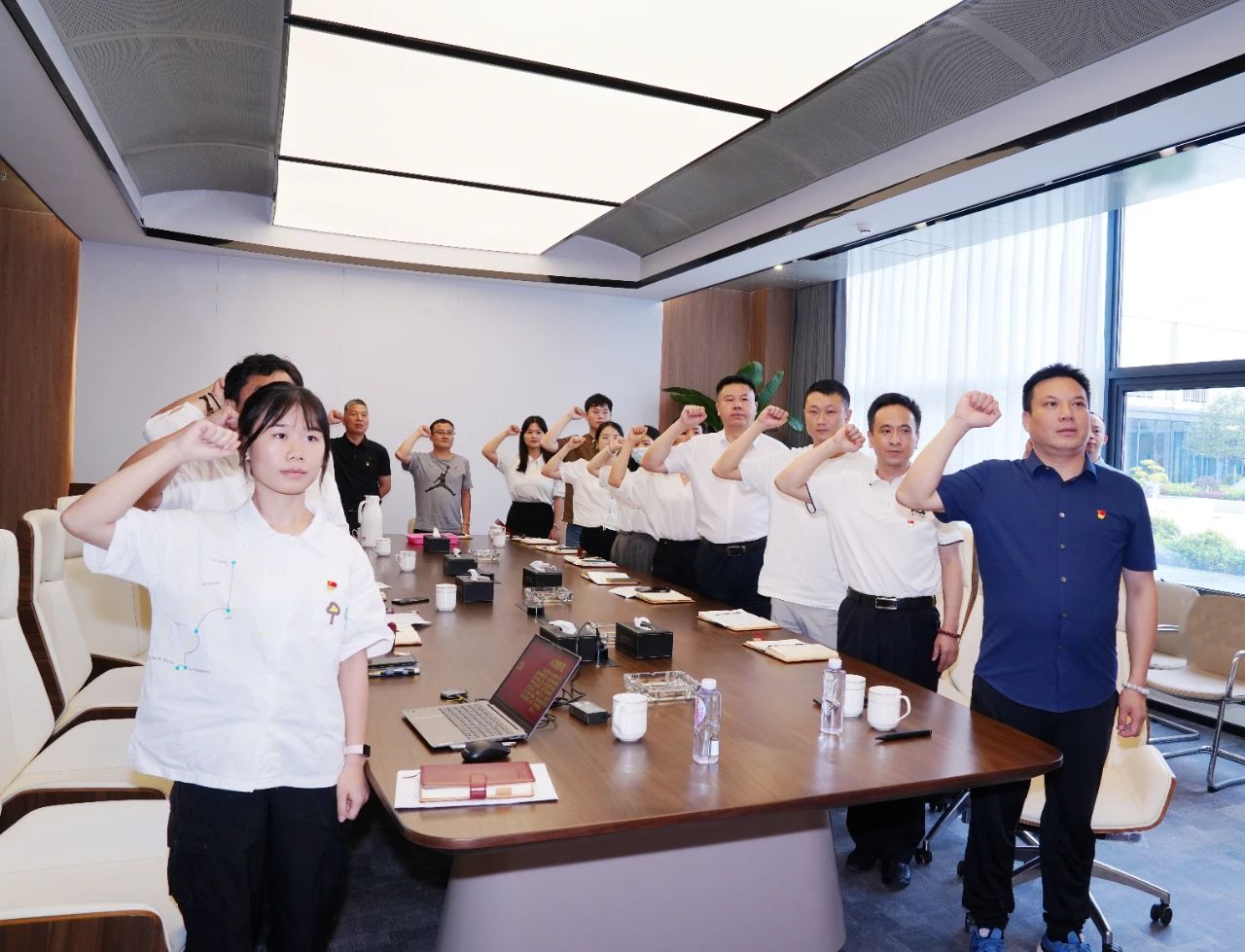 7月3日下午,未出差的集團(tuán)黨支部黨員與入黨積極分子共二十余名在三樓會(huì)議室舉行了紀(jì)念建黨103周年主題黨日活動(dòng)。黨員大會(huì)由支部副書記王麗杰主持,會(huì)上,支部書記陳偉其為大家上了一堂無比生動(dòng),富有思想性、理論性,又非常接地氣、振奮人心的黨課,使大家產(chǎn)生了強(qiáng)烈的共鳴與思考。之后相繼完成了黨紀(jì)視頻學(xué)習(xí)、討論朱雷同志轉(zhuǎn)為正式黨員以及接收陸振宇同志為預(yù)備黨員等會(huì)議議程。最后,黨支部書記、董事長(zhǎng)陳偉其領(lǐng)誓,新黨員進(jìn)行了入黨宣誓,老黨員重溫了入黨誓詞。