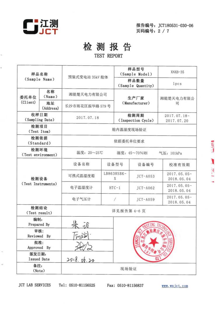 湘能楚天預制艙委托江蘇省江測檢測技術服務有限公司就預制艙的低溫環(huán)境的適應性進行現(xiàn)場測試驗證。
